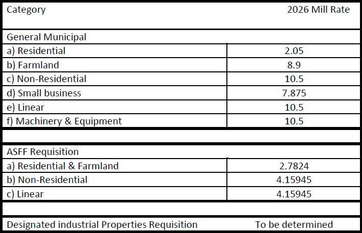 PONOKA COUNTY -- Ponoka County has adopted its finalized 2026 budget and mill rates.
